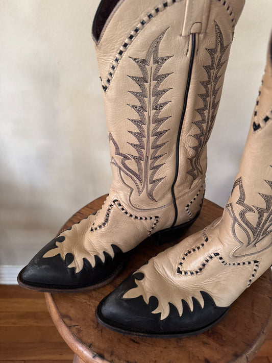 Tony Llama Black and White Cowboy Boots