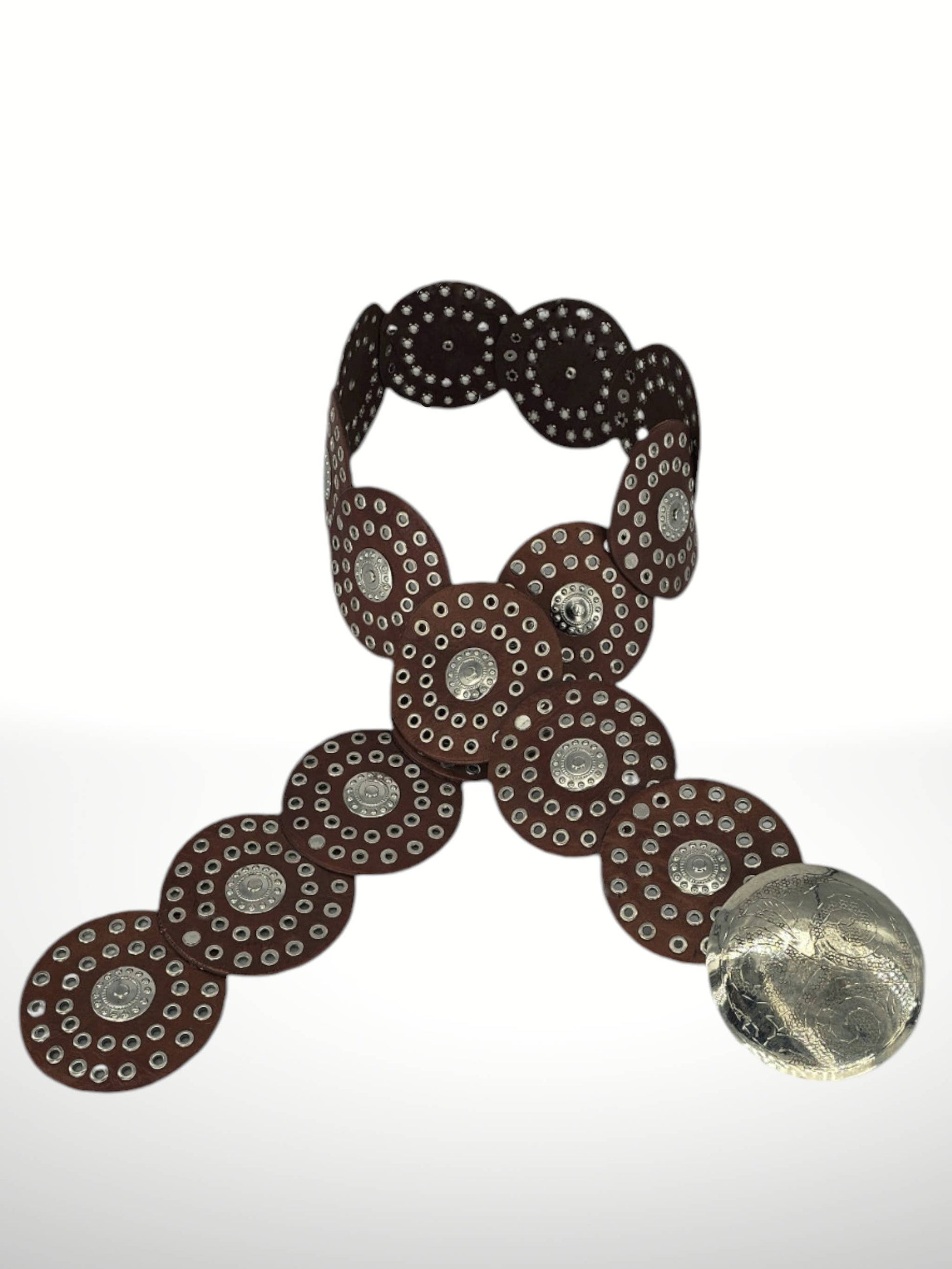 Additional details: Riveted circular embellishments that provide a striking and original design.
