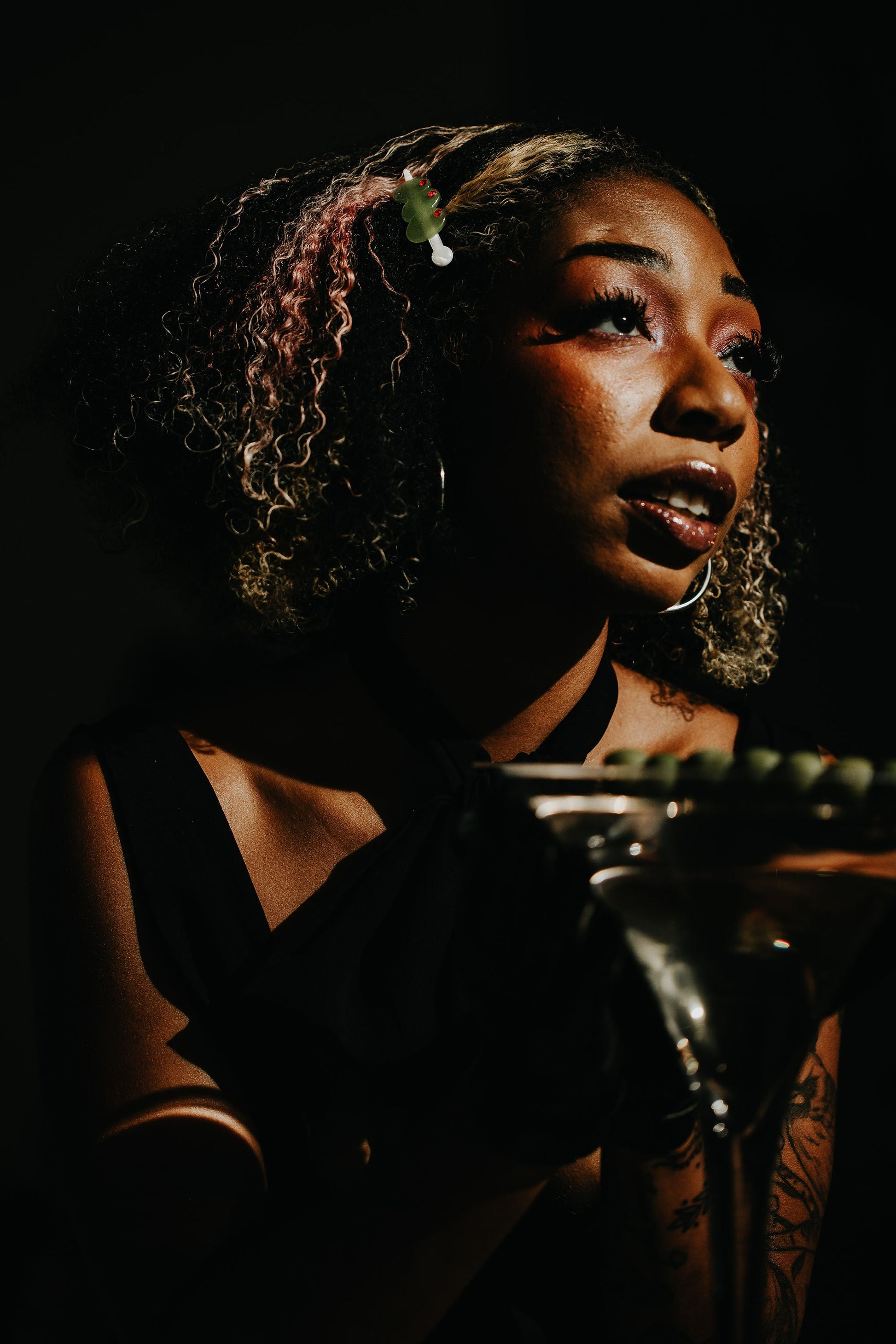 Stirred to perfection. The Extra Dirty Clip is the it girl accessory of the season, primed to keep you looking cute all throughout Olive Girl season. Featuring 3 raised green olives on a shiny silver pick with a red pimento gem.