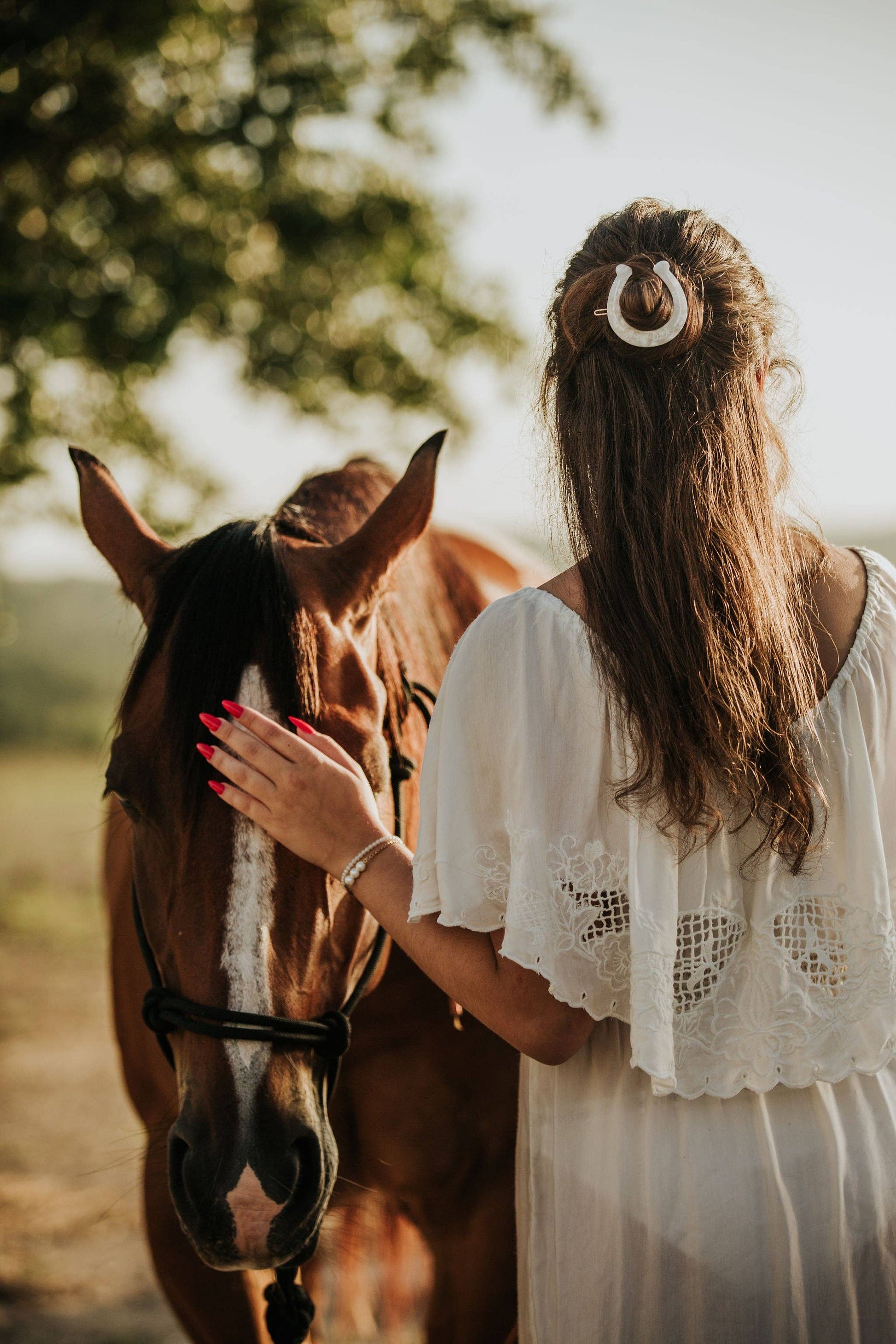 Looking for a little extra luck? The Hey Ricochet Horseshoe Clip features a classic horseshoe motif with engraved details on a ball and post clasp. Handcrafted from your choice of swirling silver, bronze, or white cellulose acetate, these lightweight clips add a touch of western style to any look.